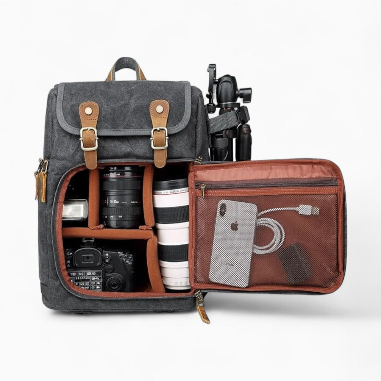 Never worry about damaging your gear on the go. The Retro Camera Bag includes a padded, shock-resistant interior with adjustable dividers, letting you tailor the space for your DSLR, mirrorless camera, lenses, or accessories. Your gear stays secure, organized, and ready when inspiration strikes.