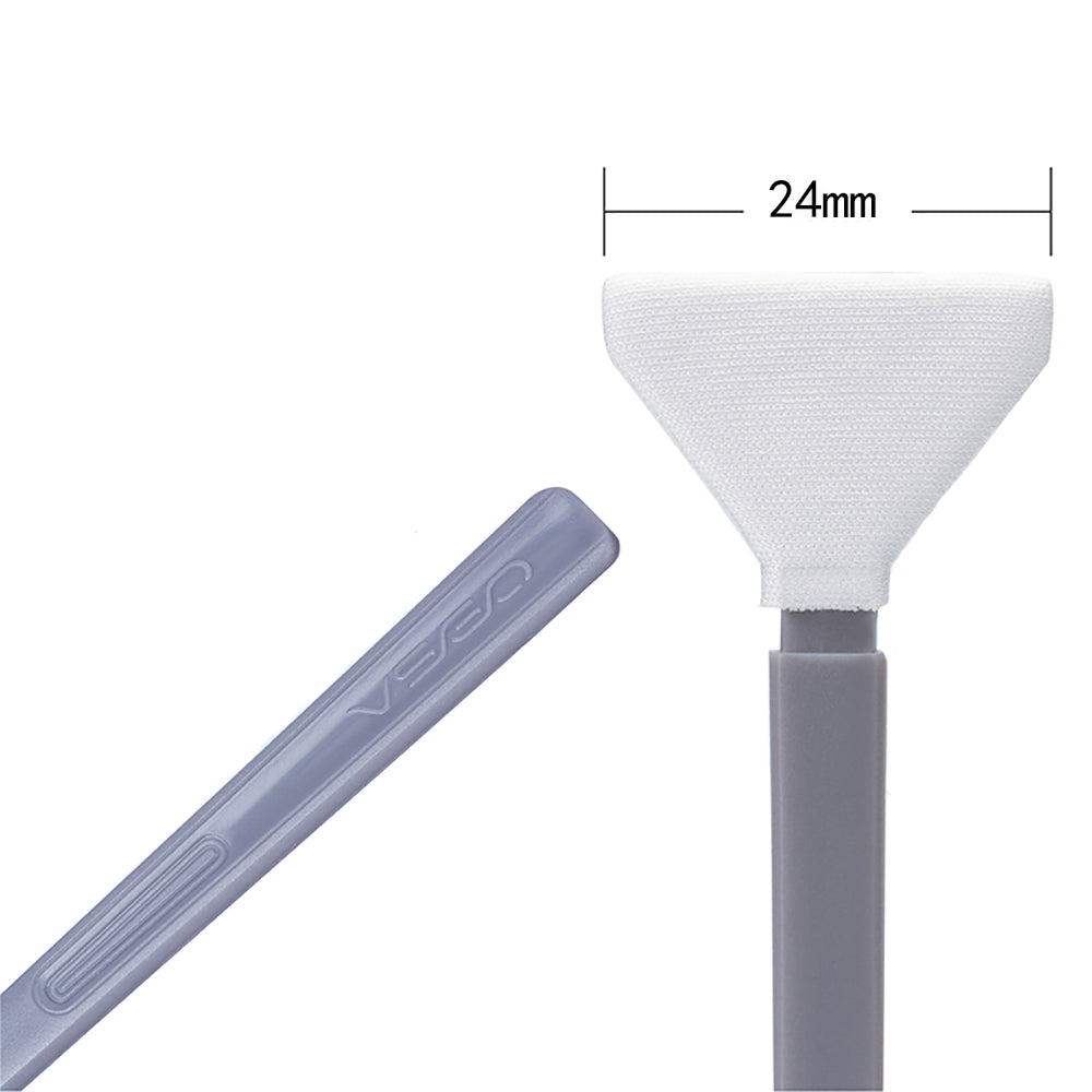 Swab DesignThe cleaning end of the swab is made of ultra fine microfibre, which will clean the sensor safely. They are produced in class 100 clean room and the vacuum sealed cleaning swab is then protected from dust contamination in transportation and storage.