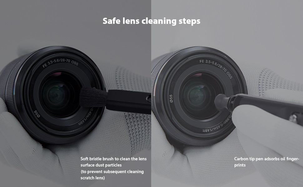 The lens pen has 2 different ends, for different uses. One end is a soft nylon bristle brush to brush dirt off of the camera body. The other end is a lens cleaner pad and is perfect for keeping the lens of your camera clean.